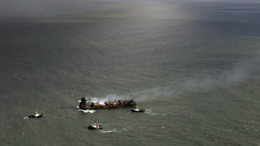 LONDON (AP) — British police arrested a man Tuesday on suspicion of manslaughter as they searched for answers about why a cargo ship hit a tanker transporting jet fuel for the U.S. military off eastern England, setting both vessels ablaze. One sailor was presumed dead in the collision, which sparked fears of significant environmental damage.